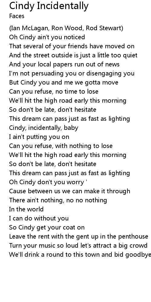 Oh Cindy ain't you noticed |