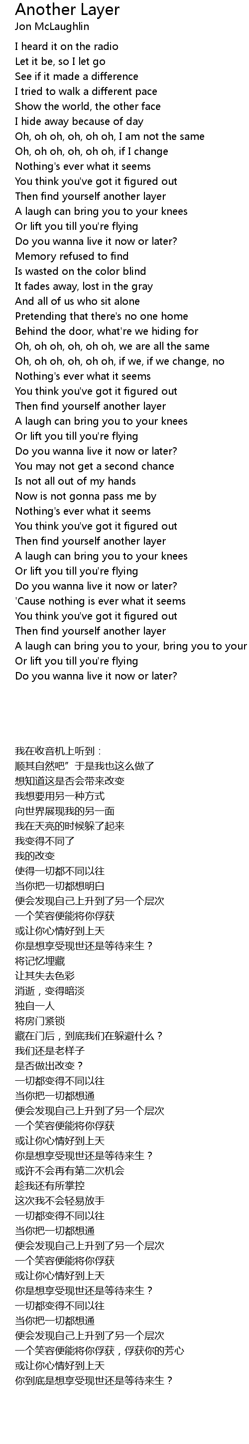 Oh, oh oh, oh, oh oh, I am not the same |