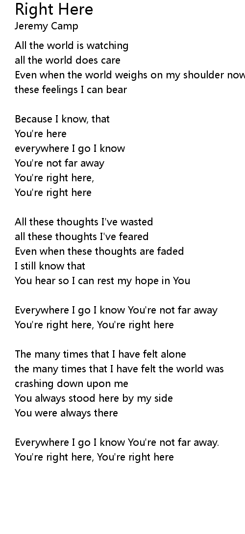 Everywhere I go I know You're not far away. |