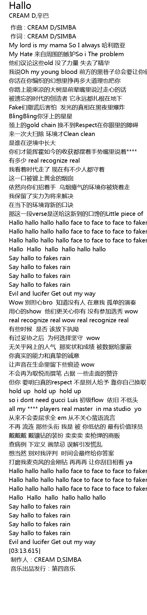 | [02:43.010] | Hallo hallo hallo hallo face to face to face to fakers |