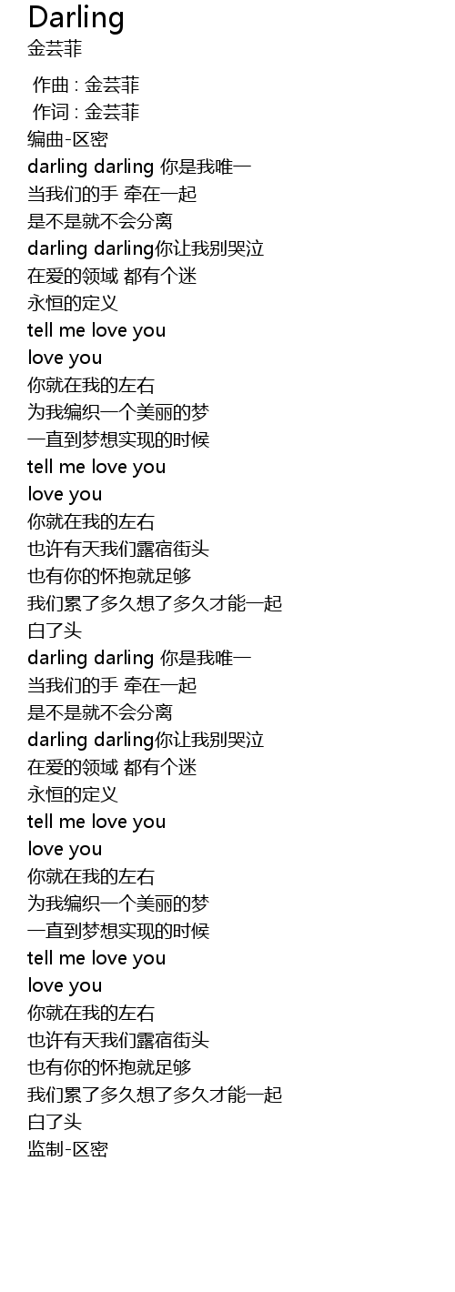 | [00:15.72] | darling darling 你是我唯一 |
