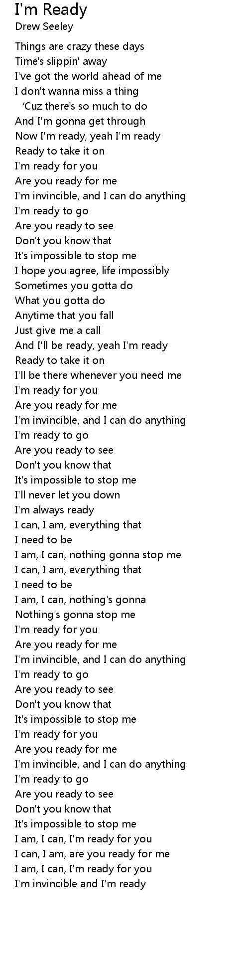 | Now I'm ready, yeah I'm ready | |