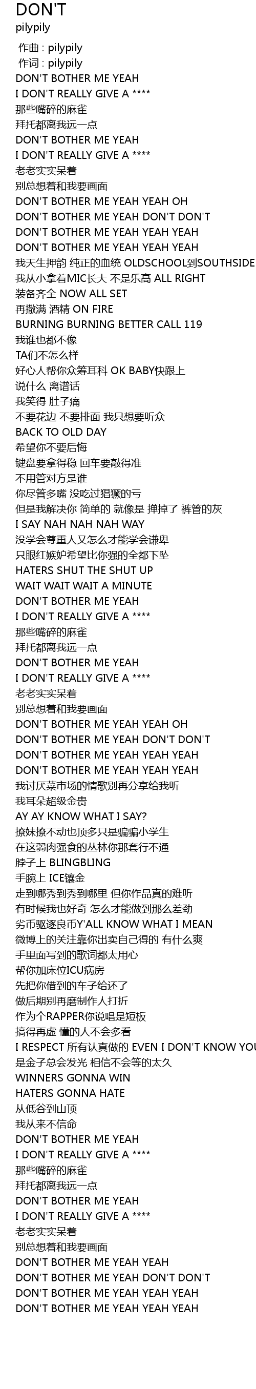 | [00:17.74] | DON' T BOTHER ME YEAH |