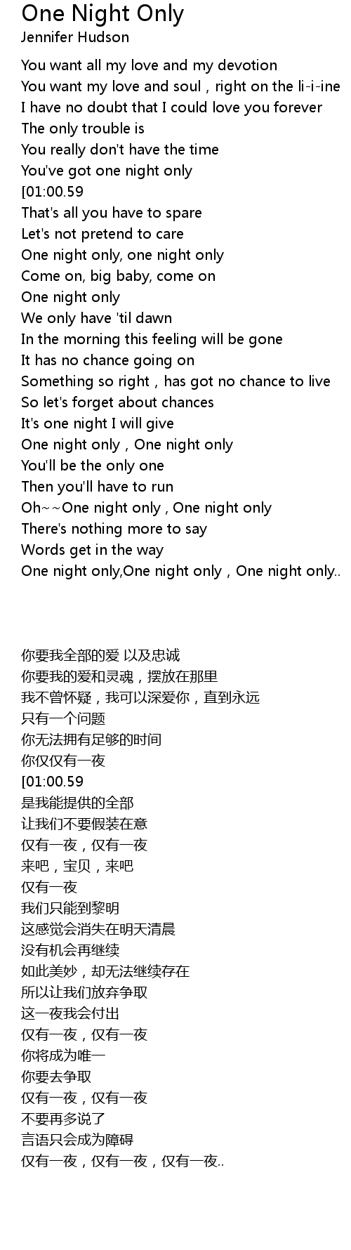 | [00:53.37][01:00.59][02:06.79][02:26.66] | One night only |