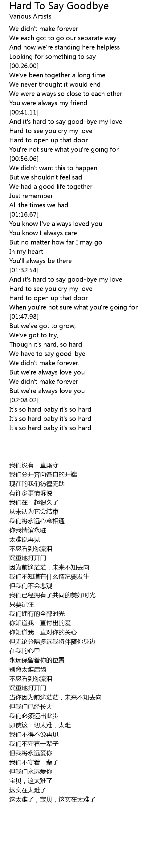 Though it's hard, so hard |