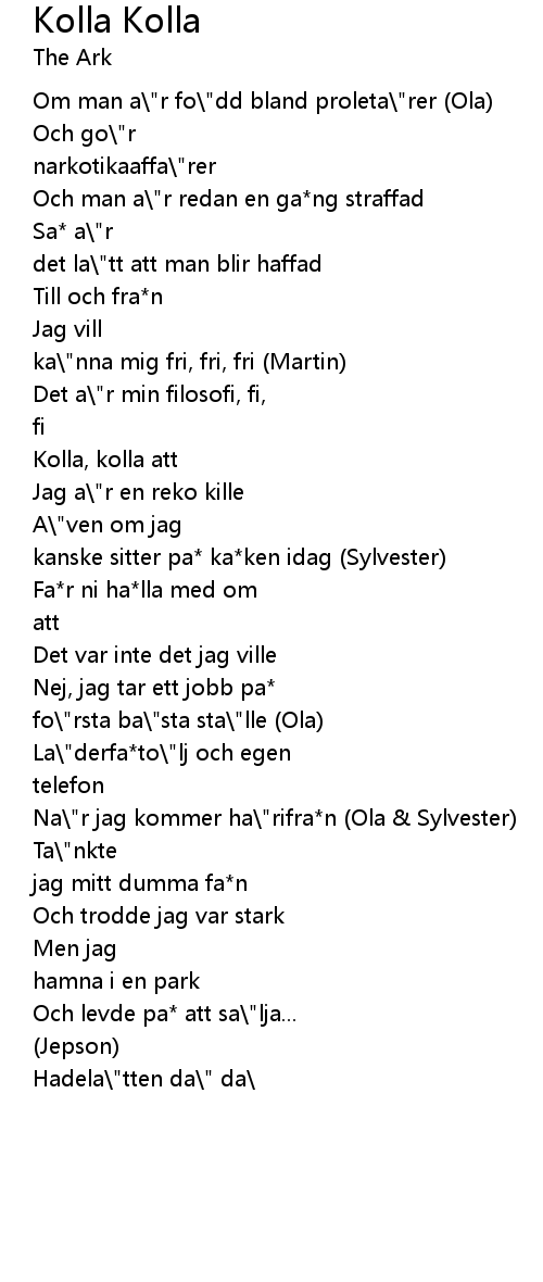 | Na\"r jag kommer ha\"rifra*n (Ola & Sylvester) | |