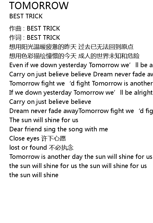 | 歌曲 | TOMORROW |