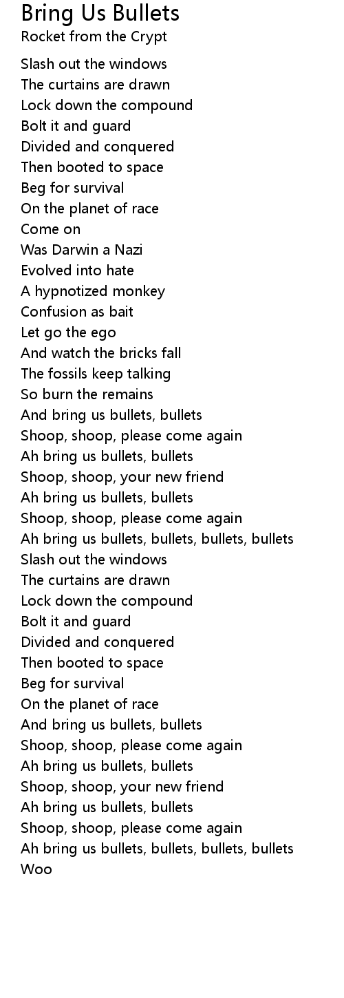 Ah bring us bullets, bullets, bullets, bullets |