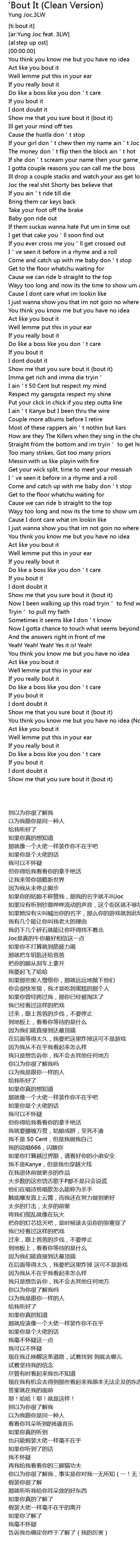 | [00:43.46] | If your girl don t chew then my name ain t Joc |