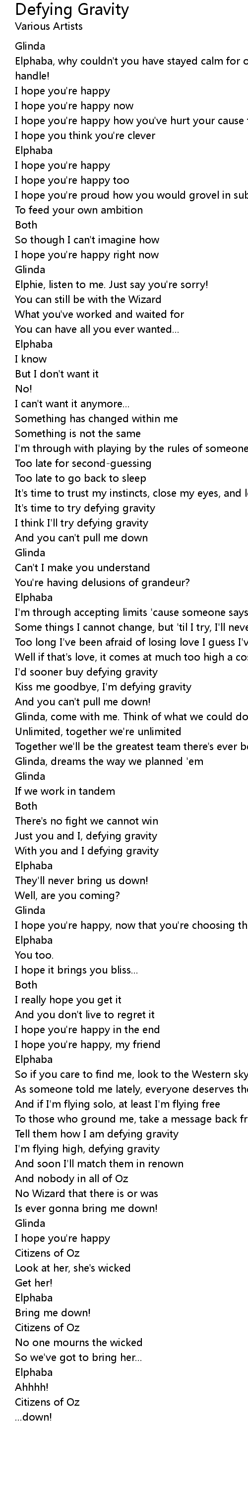 Elphaba, why couldn't you have stayed calm for once? Instead of flying off the handle! |