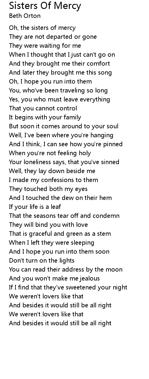 Oh, the sisters of mercy |