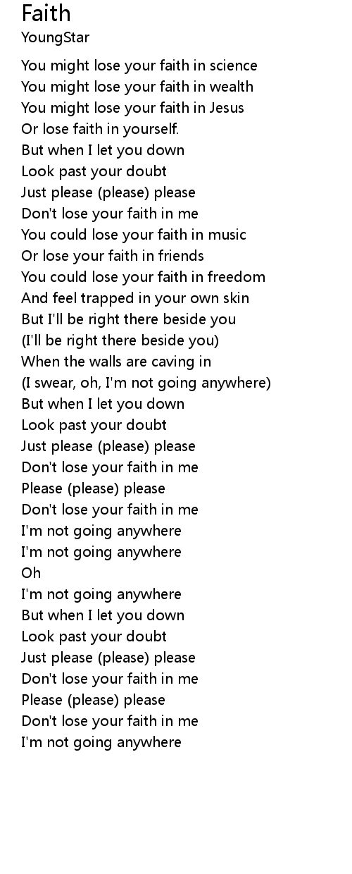 Don't lose your faith in me |