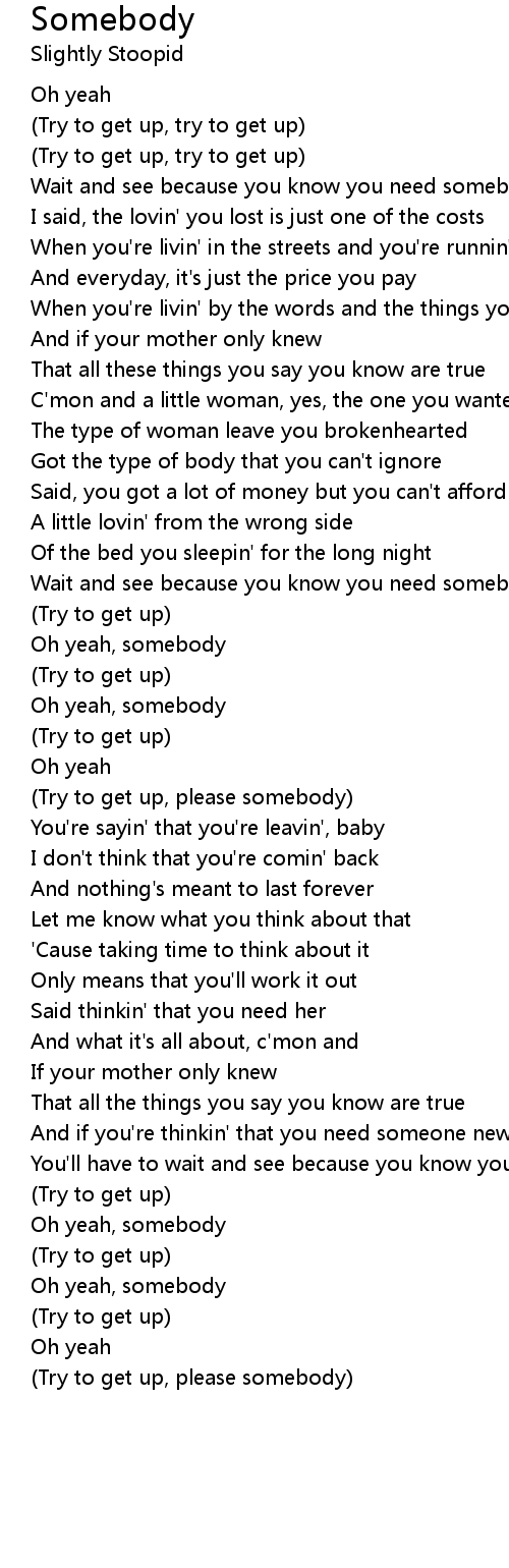 Oh yeah, somebody |