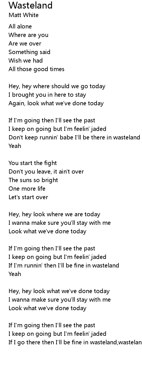 Don't keep runnin' babe I'll be there in wasteland |