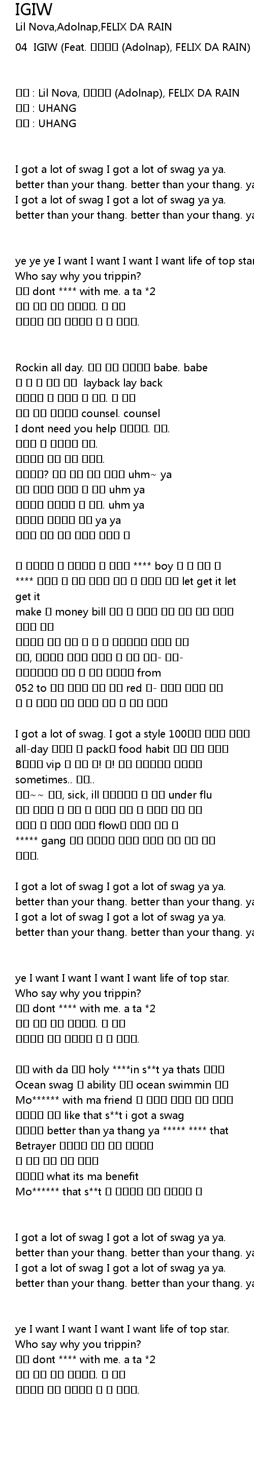 | 04 IGIW (Feat. 아돌나프 (Adolnap), FELIX DA RAIN) | |