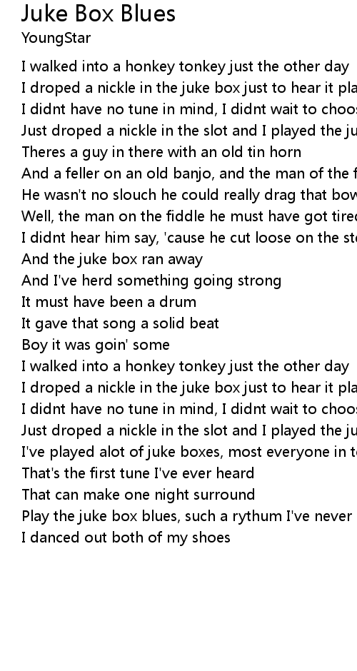 Just droped a nickle in the slot and I played the juke box blues |