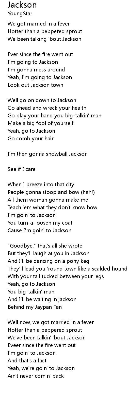 | Cause I'm goin' to Jackson | |