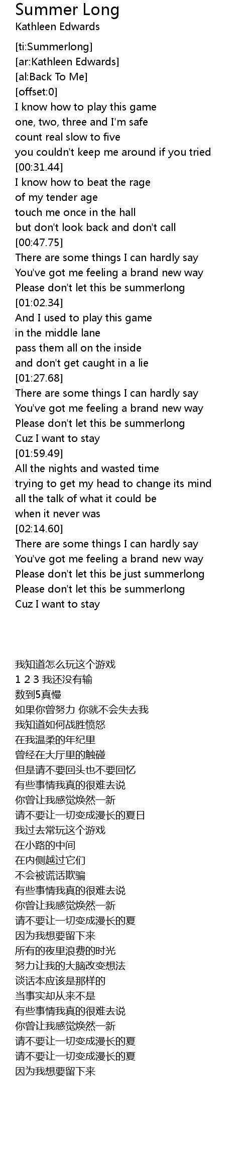 [ti:Summerlong] |