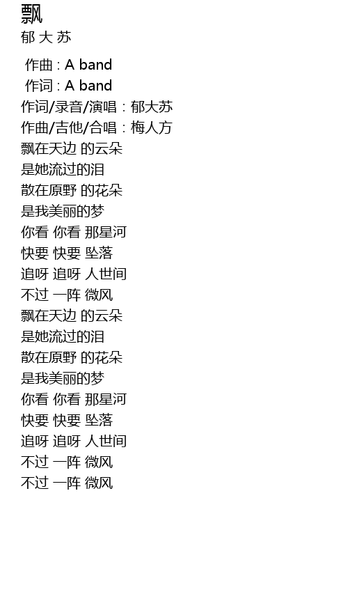 | [00:00.668] | 作词/录音/演唱:郁大苏 |