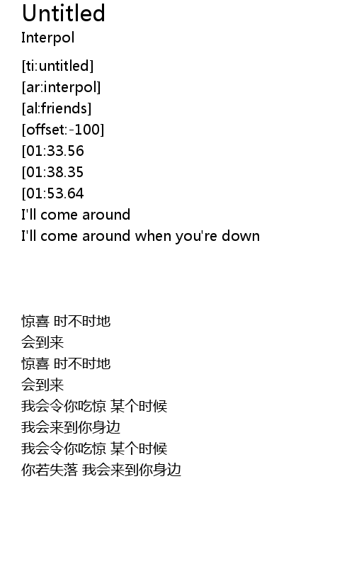| [01:23.12][01:33.56] | Surprise sometimes |