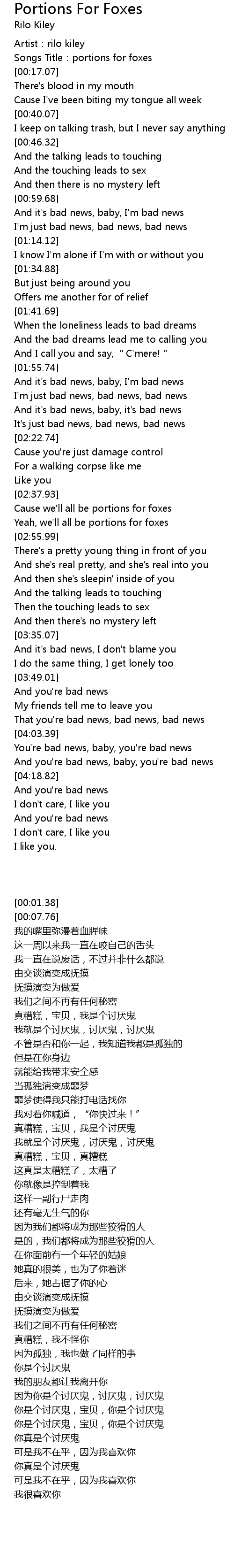 | [02:03.99] | I' m just bad news, bad news, bad news |
