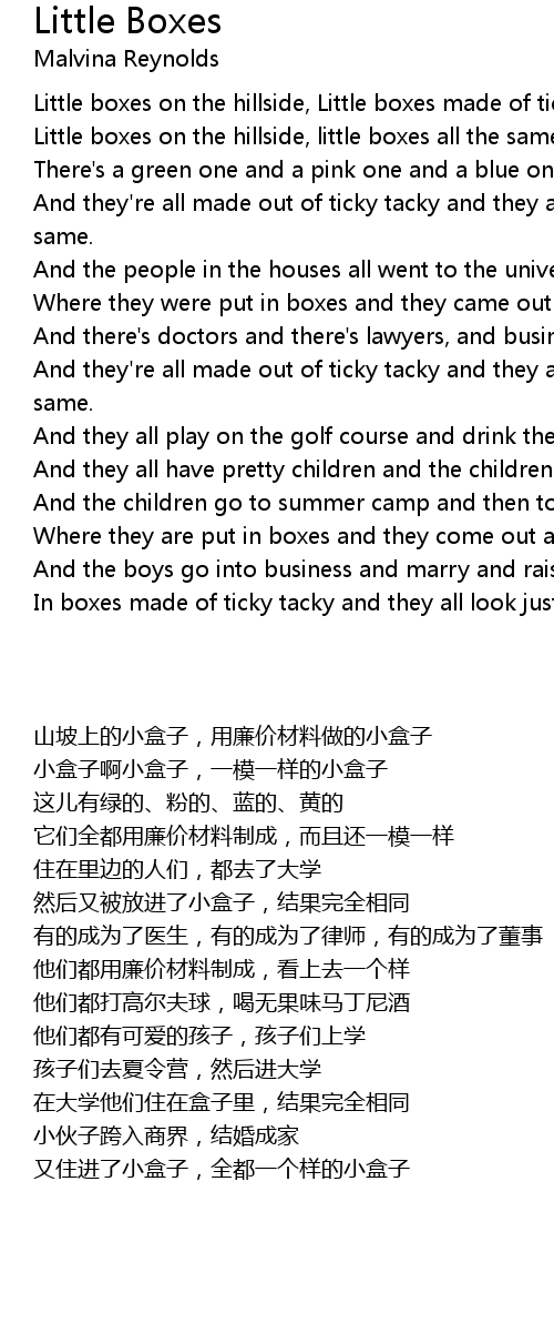 Little boxes on the hillside, Little boxes made of tickytacky |