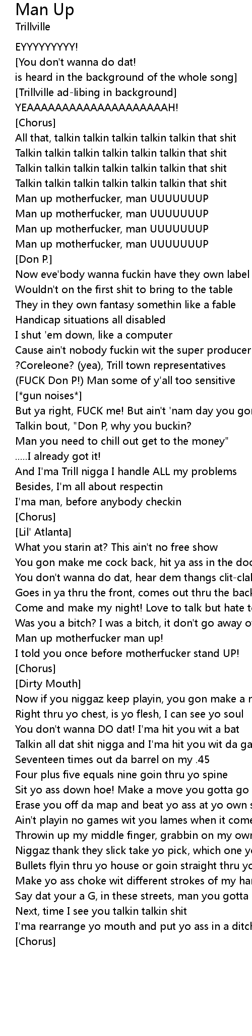 | Man up motherfucker, man UUUUUUUP | |