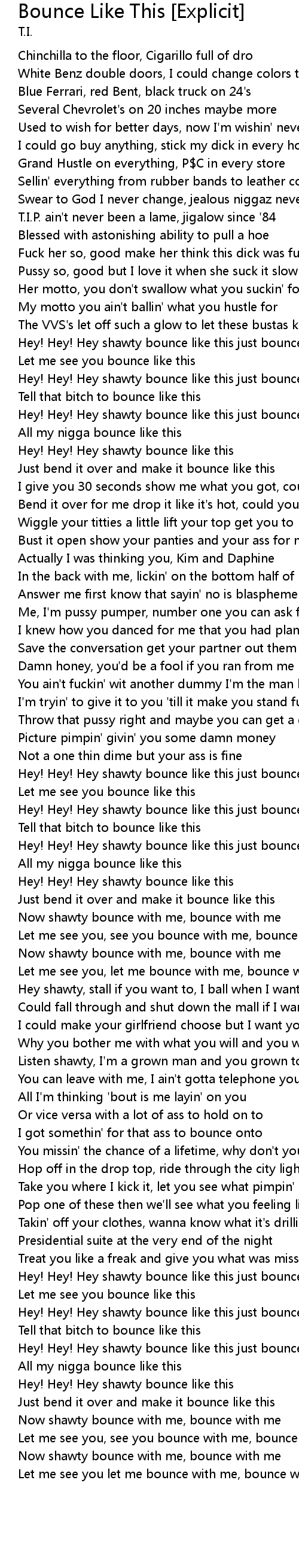 Hey! Hey! Hey shawty bounce like this just bounce |
