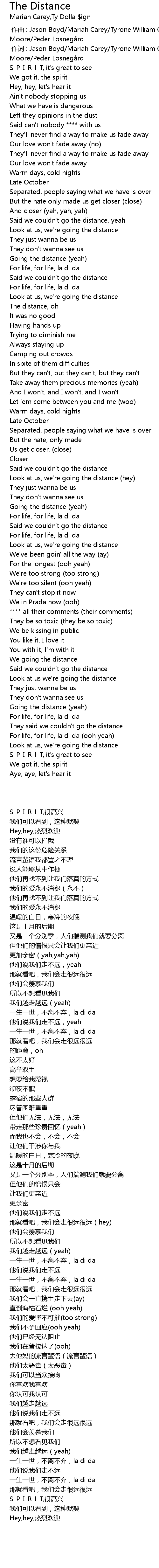 | [00:00.003] | zuo ci : Jason Boyd Mariah Carey Tyrone William Griffin, Jr. Sonny Moore Peder Losneg rd |