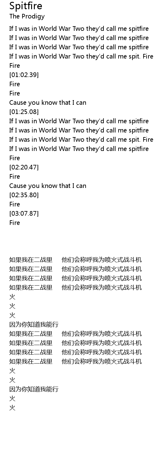 [01:48.88] 如果我在二战里 他们会称呼我为喷火式战斗机