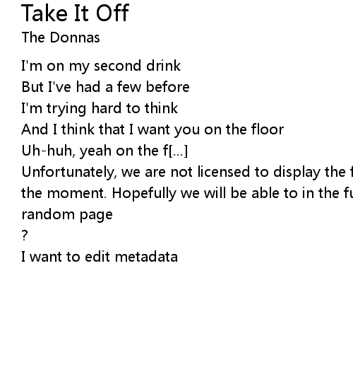 | Unfortunately, we are not licensed to display the full lyrics for this song at the moment. Hopefully we will be able to in the future. Until then, how about a | |