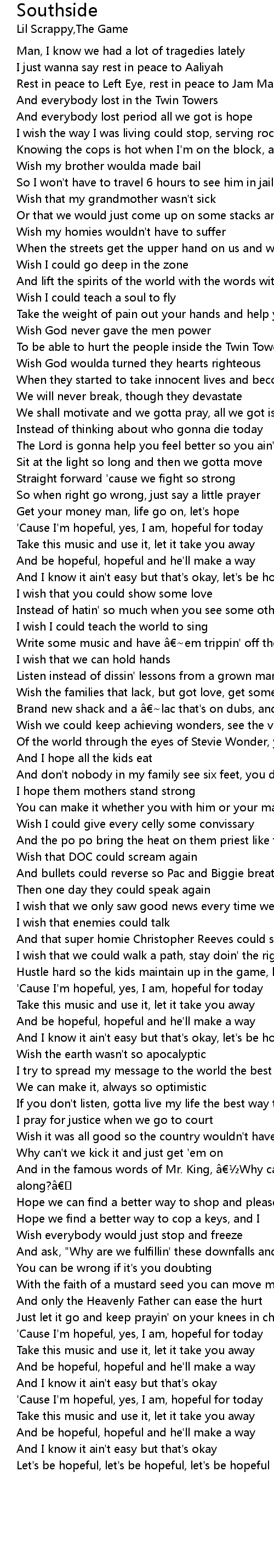 | And I know it ain' t easy but that' s okay, let' s be hopeful | |