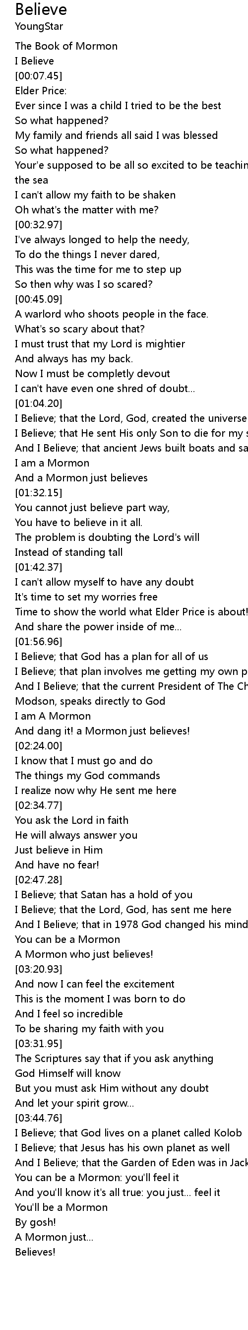 And a Mormon just believes |