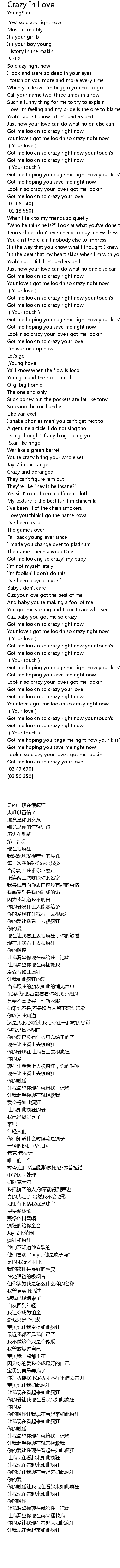 | 歌曲 | Crazy In Love |