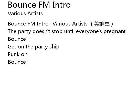 | [00:00.00] | Bounce FM Intro Various Artists měi qún xīng |