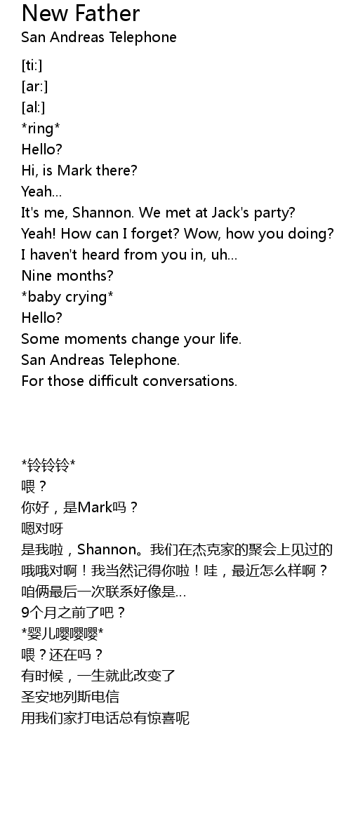 | [00:18.46] | San Andreas Telephone. |