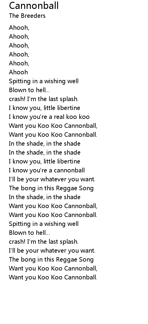 [02:59.49] Want you Koo Koo Cannonball,