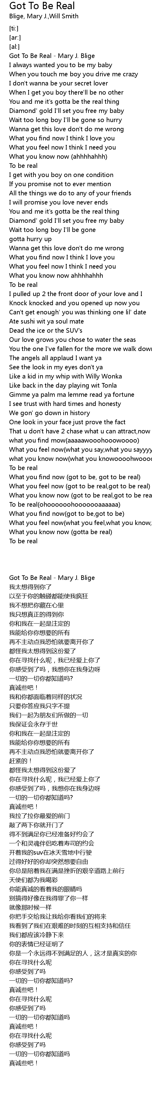Got To Be Real - Mary J. Blige |