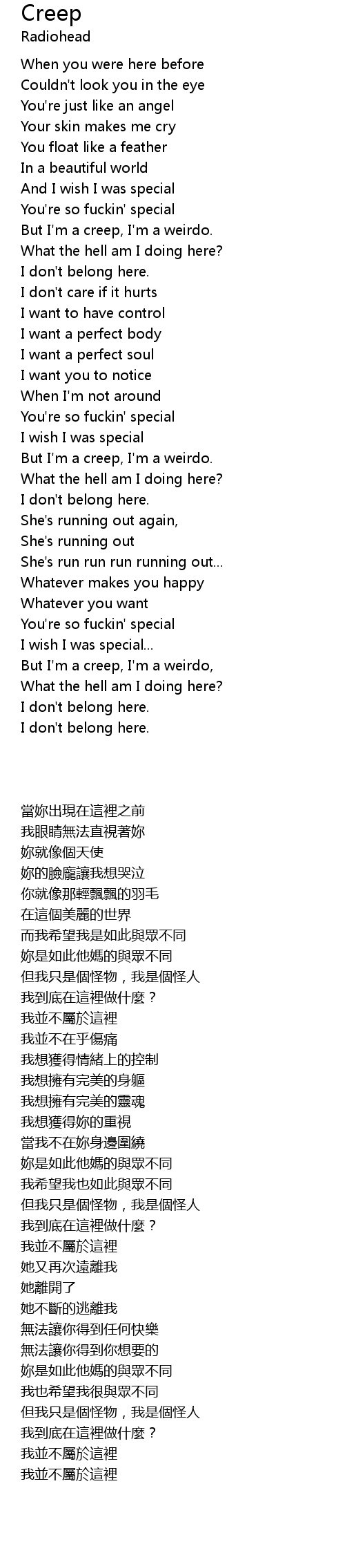[01:01.000] But I'm a creep, I'm a weirdo.