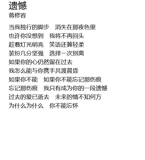 | 忘记那伤痕 我只有成为你的一段遗憾 | |