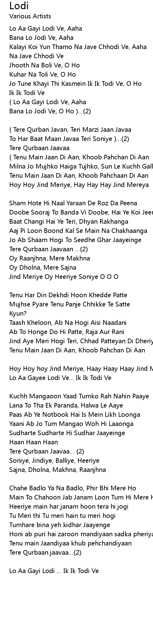 | ( Lo Aa Gayi Lodi Ve, Aaha | |