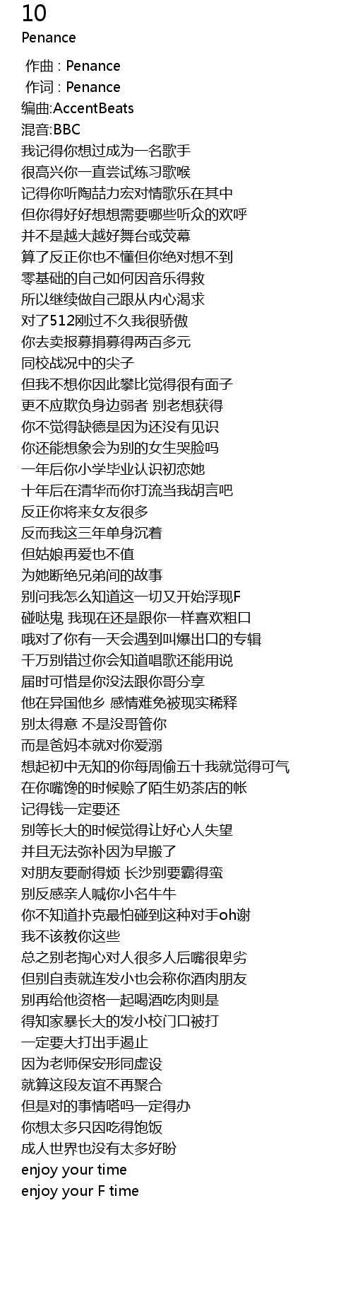 | [01:51.213] | 碰哒鬼 我现在还是跟你一样喜欢粗口 |