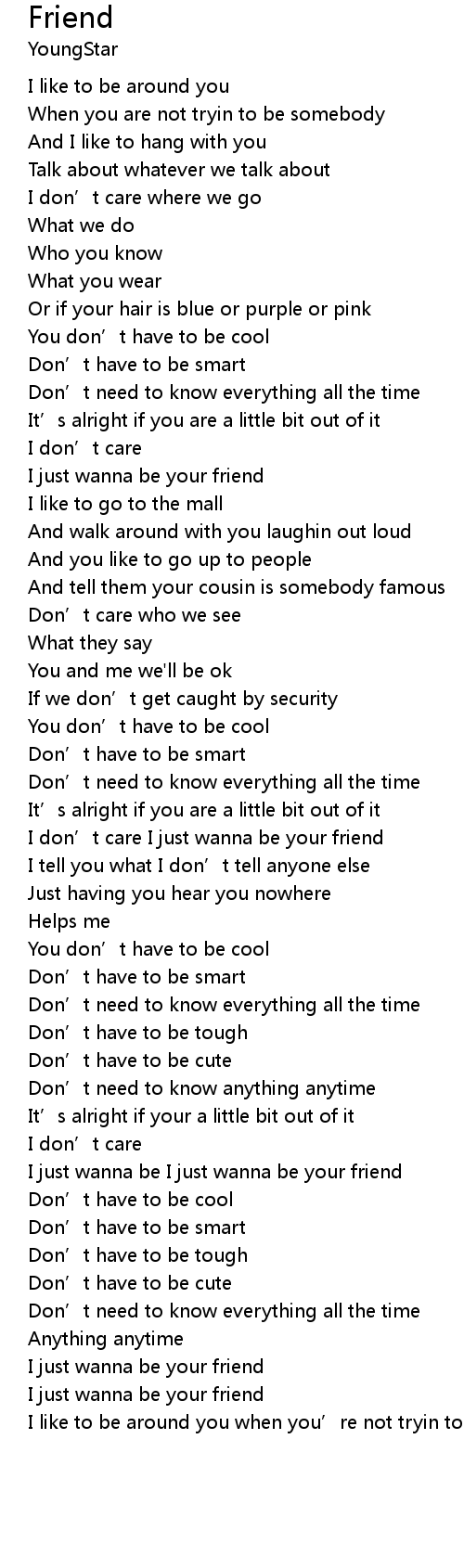 | [03:22.43] | I just wanna be your friend |