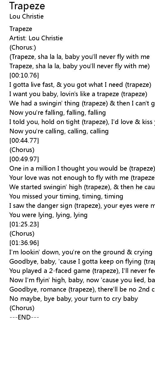 Goodbye, baby, 'cause I gotta keep on flying (trapeze) |