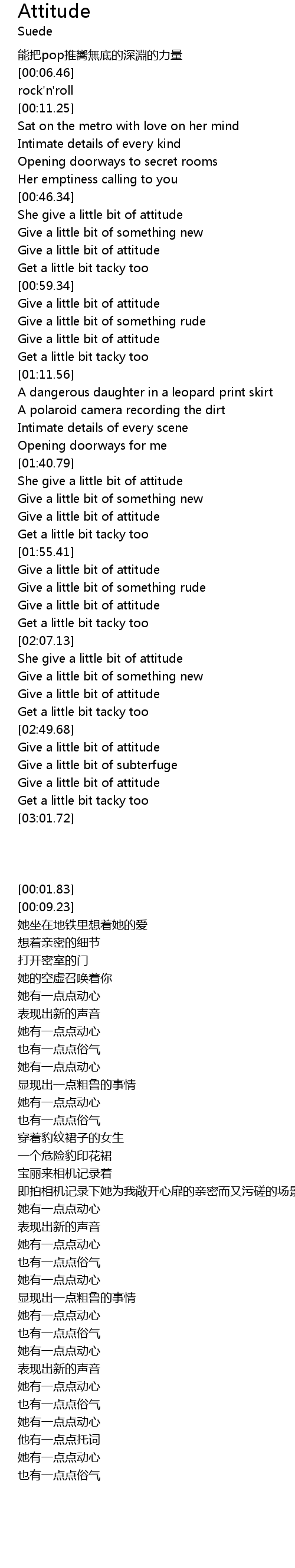 | [01:41.76] | She give a little bit of attitude |