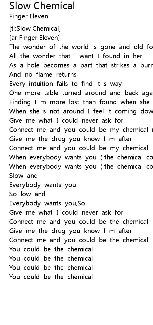 | [01:59.664] | When everybody wants you (the chemical comes slow) |