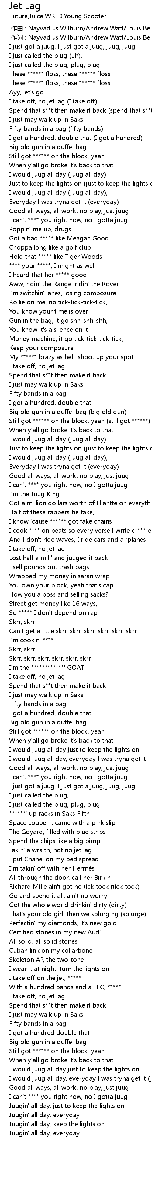 | [00:15.36] | I take off, no jet lag (I take off) |
