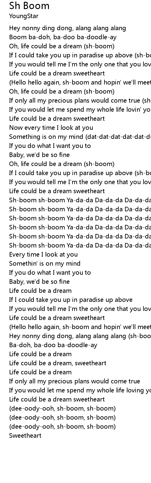 Sh-boom sh-boom Ya-da-da Da-da-da Da-da-da Da |