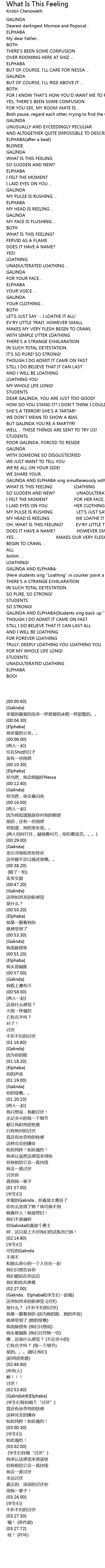| [03:02.00] | GALINDA AND ELPHABA(Students sing back-up "loathing") |