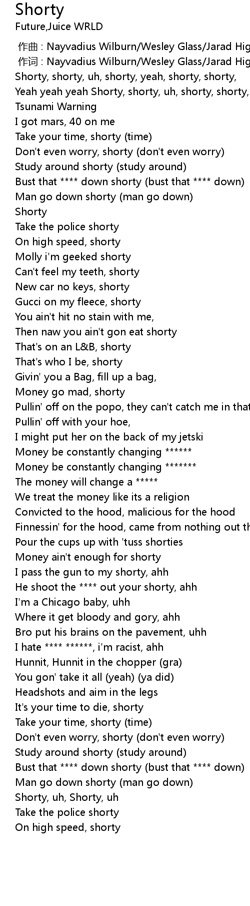 | [00:06.88] | Yeah yeah yeah Shorty, shorty, uh, shorty, shorty, uh |